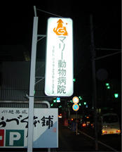 ▲夜、マリー動物病院にお越しの際は、画像の看板を目印にしてください。